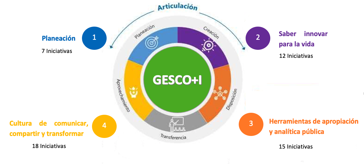 - Consolidar los resultados logrados desde cada uno de los planes institucionales que Conforman la estrategia de gestión del conocimiento y la Innovación GESCO+I.